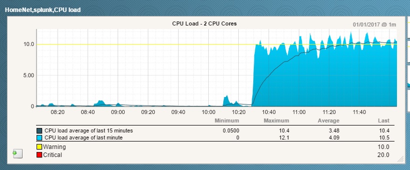 Had my alerting system yell at me about high CPU load on my Splunk Free VM;
